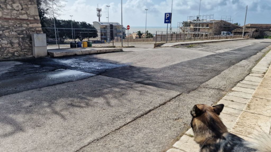 -”En hund med en sopsäck går längs via Pulacara i kvarteret San Giorgio i Catania och lämnar sedan soporna i ett litet område som har förvandlats till en olaglig soptipp. Det upptäcktes av kommunen när de granskade bilderna från övervakningskameran som installerats för att identifiera och bestraffa dem som olagligt dumpar sopor.