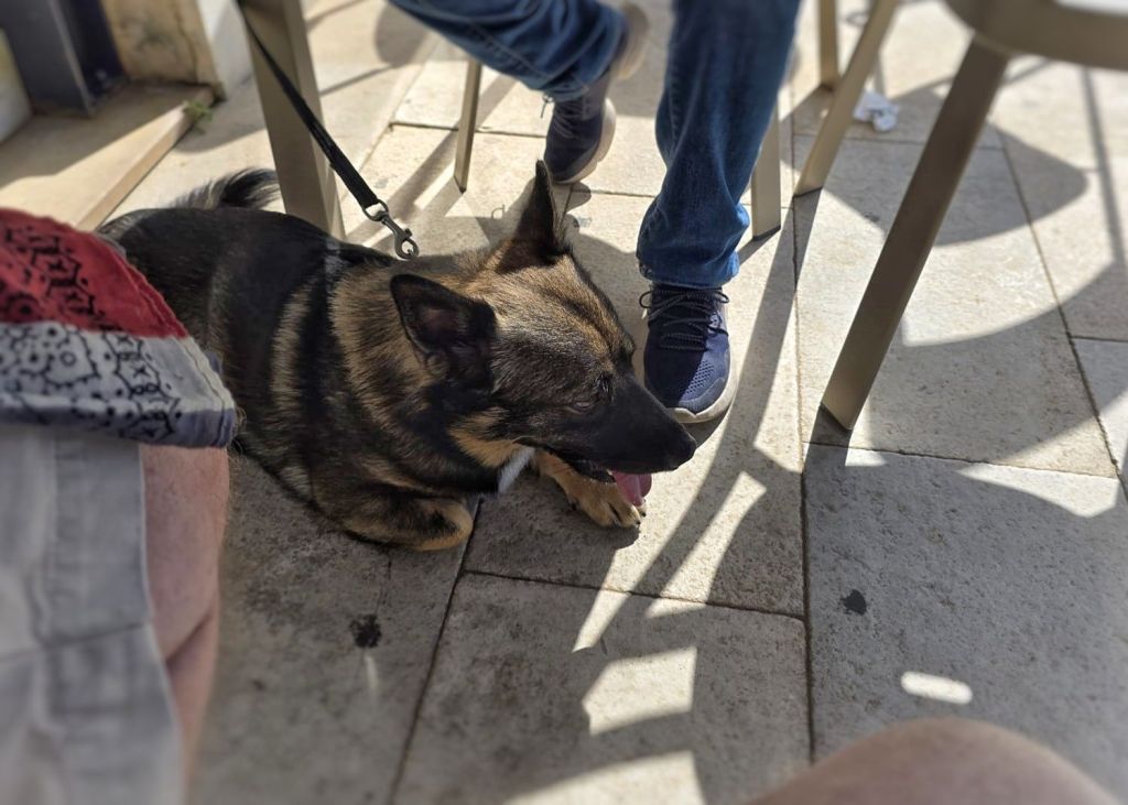 Tränar platsliggning, ensam men med grannens Lancashire heeler liknande hund som störning.
