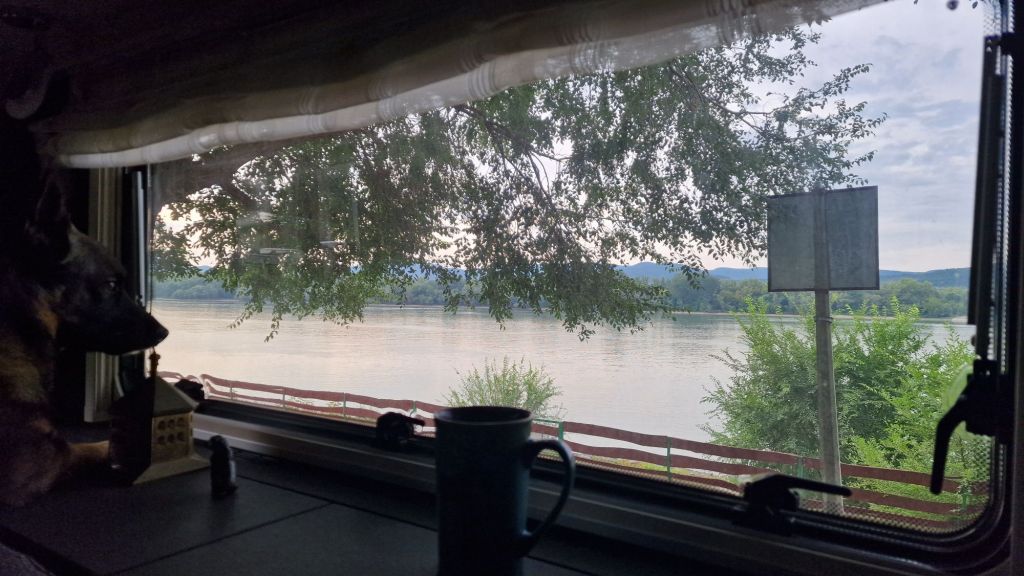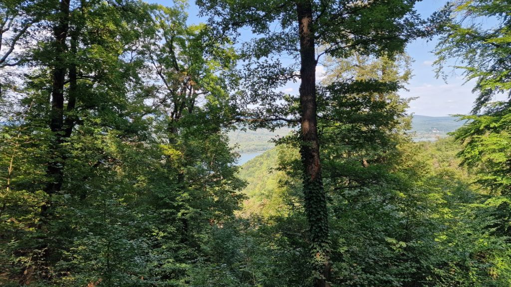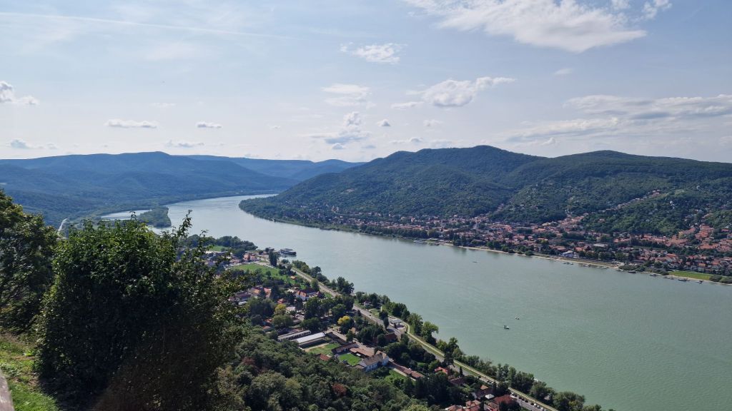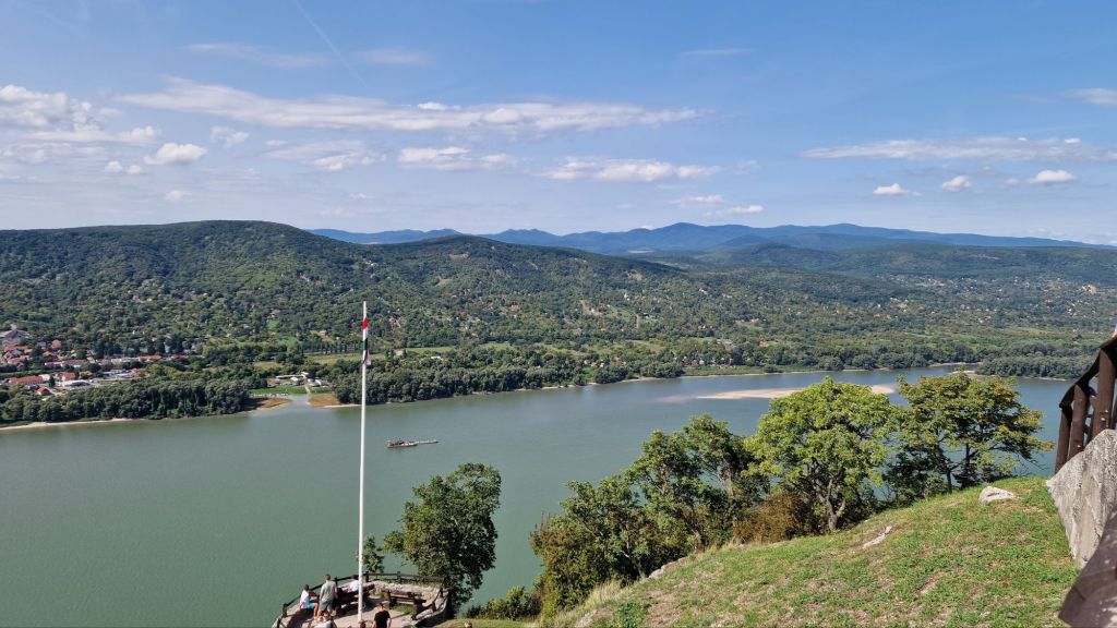 Härifrån syns två länder, berget närmst Donau ligger i Ungern och bergen bakom i Slovakien.