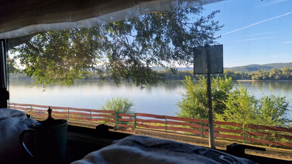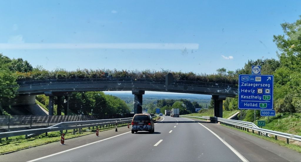 Utsikt från bron Kőröshegyi Völgyhíd. Balaton i bakgrunden, vattnet bakom räcket är som det verkar, sportfiskevatten för Silverruda.