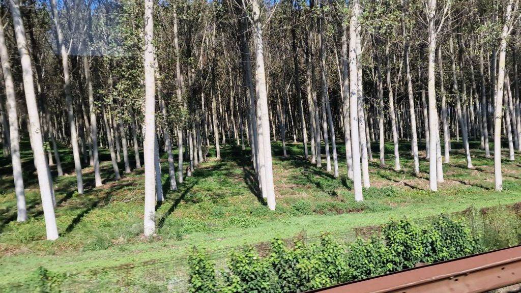 Odlad skog, energiskog möjligen? Ser snabbväxande ut. Samma typ av odling har kantat vägarna i norr också, i olika åldrar och även i avverkning.