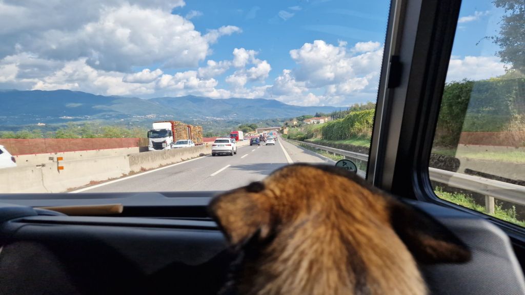 -”Oaoaooooo” Björn vaknade till ringsignalen, som förr betydde att klockan är 5 och matte ska åka till jobbet. Men nu betyder det att klockan är 8 och vi ska dricka kaffe och sedan ge oss av, riktning Florence.