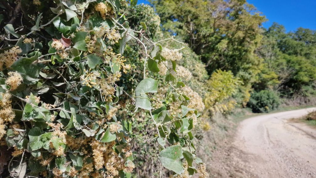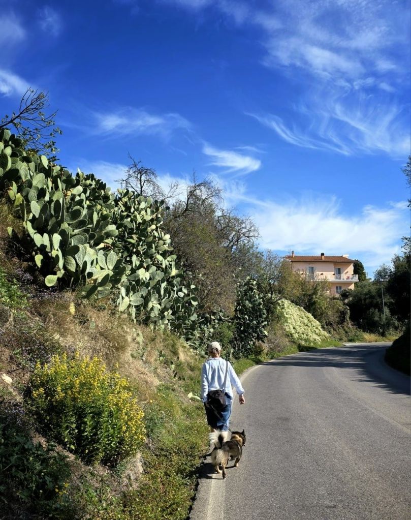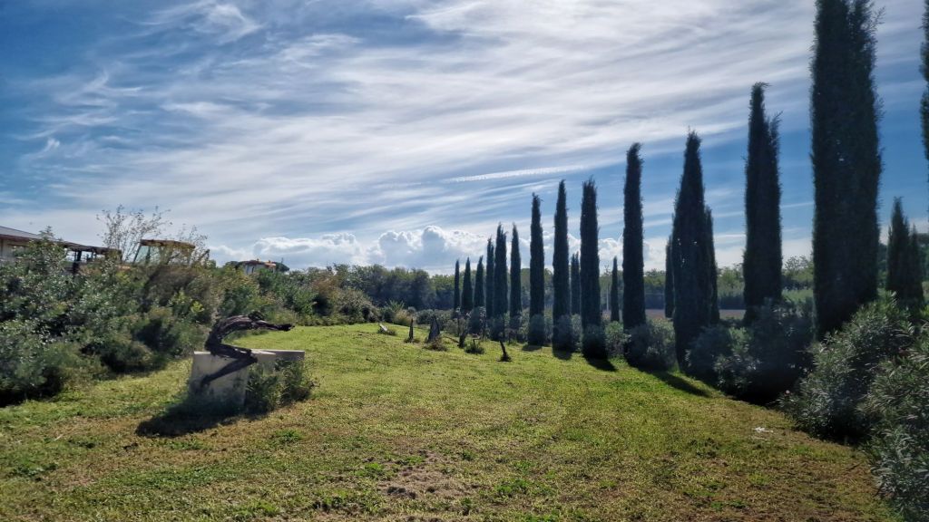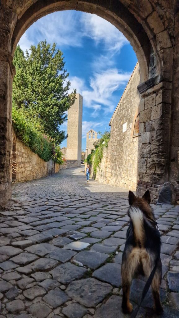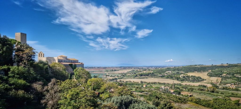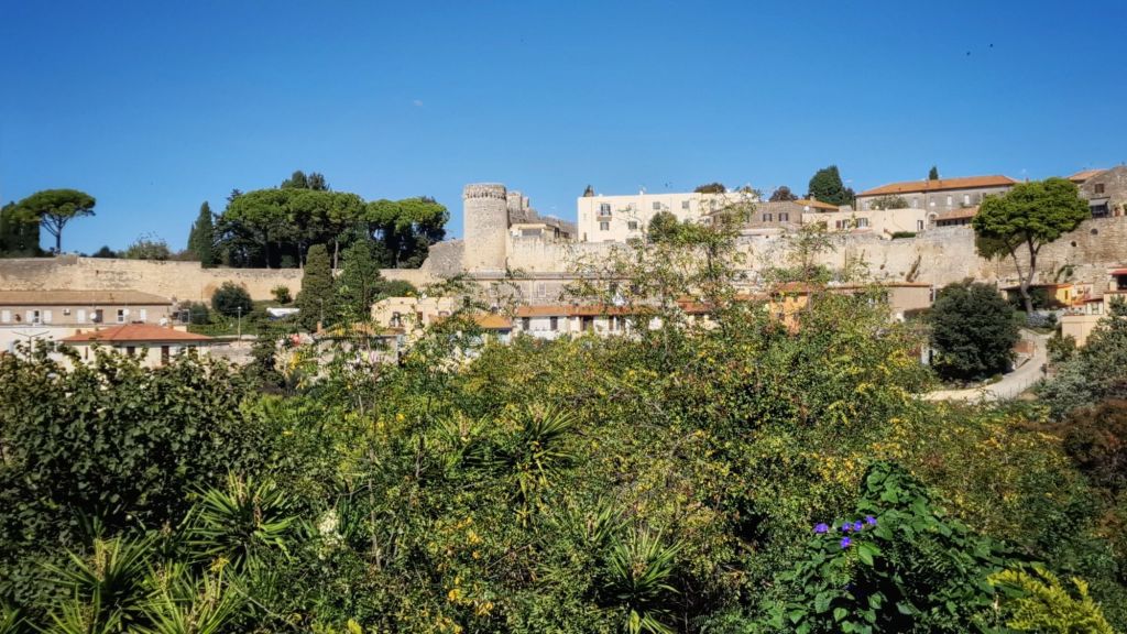 Morgonkaffet Konstinstallation på Agriturismo-gården som vi står på.Kustfikonkaktus i sitt rätta habitat. Jag och Björn var inte lika välanpassade, vägrenen var inte särskilt rymlig och bilarna kör fort.Blomman på bilden är en eldkrona (Lantana camara), även känd som buskverbena. Vägen mot slottet. TorgetPorten till slottet.Nordost NorrNordvästSlottet med sitt tornmKlockspelVarning för hunden.Torget, vi käkade på restaurang Al Pacino. Suveränt.Staden med grön förgrund, de små blå prickarna är blommor.Slottet med grön förgrund, de små blå prickarna är blommor.Vägbygge, men det var rätt väg för oss.Pilen visar var vår husbil står. Man ser Agriturismos restaurang och reception tydligt mitt i bilden.Smilax aspera, väldigt dammiga blommor eftersom de växer vid grusvägen. Men de luktar starkt, sött och parfymigt gott.