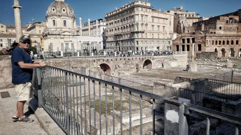 Sedan blev det en promenad till Tibern. Vi passerade ön som ligger mitt i Tibern. På vägen försnillades Björns vattenflaska. Då fick vi gå och ta vatten, cappuccino resp caffe doppio.