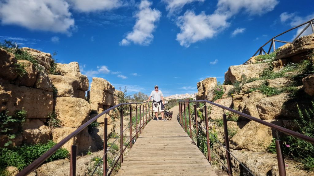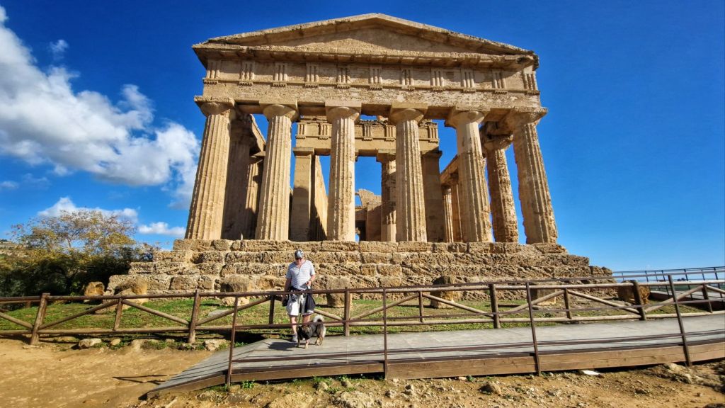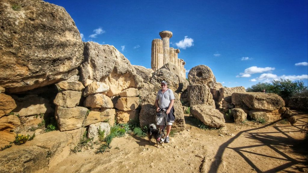 Nu börjar expeditionen.Castor och Pollux tempel (400 f.Kr) med Konny och Björn i förgrunden.Delar av Zeus-staty.Konny och Björn tänker sig tillbaka till bronsåldern. Herakles tempel i bakgrunden.Herakles tempel är det äldsta i dalen. Från ca 500 före kristus och byggt i Dorisk stil.ConcordiatempletConcordiatempletConcordiatempletConcordiatempletConcordiatempletIkaros, innan han föll, men ändå fallen. (Rester av en utställning 2011.)Björn och Ikaros.Olivträd, skönt med skugga.Concordiatemplet och IkarosOlivträd och Concordiatemplet.Konny och Björn går mot Heras tempel.Konny och Björn, gravplatsområde, kristen tid.Konny och Björn, gravplatsområde, kristen tid.Utsikt från Nekropolen.Utsikt övet medelhavet.Gravplatsområde, kristen tid.Utsikt från gravplatsområdet.Utsikt från gravplatsområde, kristen tid.Gravplatsområde, kristen tid.Gravplatsområde, kristen tid.Gravplatsområde, kristen tid.Ödla, troligtvis Ruinödla.Konny och Björn på väg till Heras tempel.Konny och Björn i trädgårdsplanering.Pelarna är från Heras tempel, grekiska perioden, några hundtatal år före kristus.Heras tempelHeras tempel