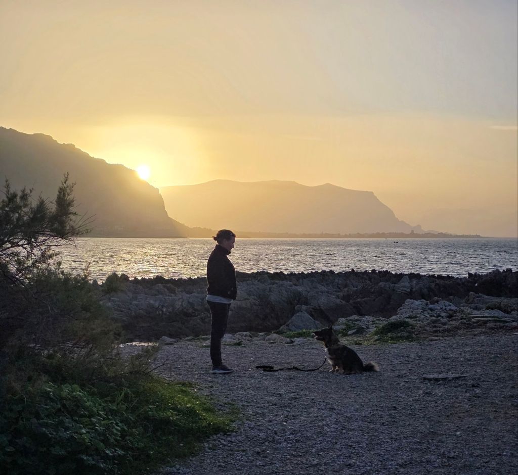 Vi har varit här lite extra länge, för att få lite vardag i tillvaron och det har varit skönt. Här är lite som ”Siciliens Lerkil”, ”hemmakänsla” med strand, fiskehamn, strövvägar för hund, klippor, seglarskola och nära till restaurangen. Och små bilar med alldeles för stora högtalare.