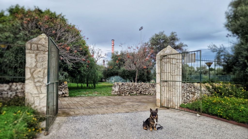 Morgonpromenad på en industriväg, här smygfotade jag Björn en vattendistributionsanläggning genom ett galler.Björn planerar trespassing in på ett tennisområde.Björn är nu inne på området. Ett raff ligger synligt från vardagsrummet. Vindriktingen är viktigt för personalen att ha koll på. Det finns hela fem vindriktningsvisare i bilden. Även i denna förminskade bild syns de.