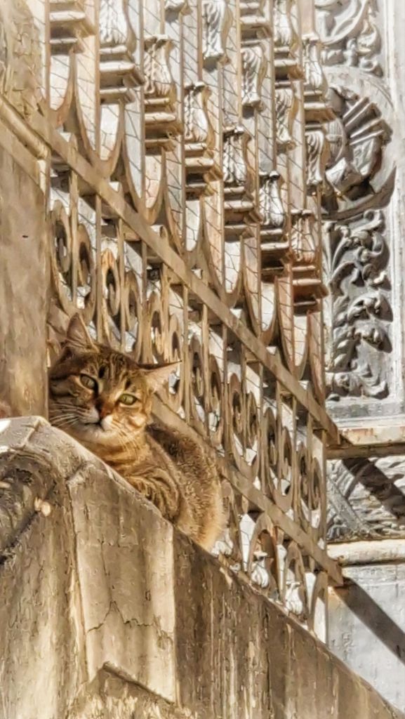 Duomo di San Giorgio –har sin egna kortsvansade katt som var tam och kärvänlig mot turister, men lite avståndstagande mot Björn.