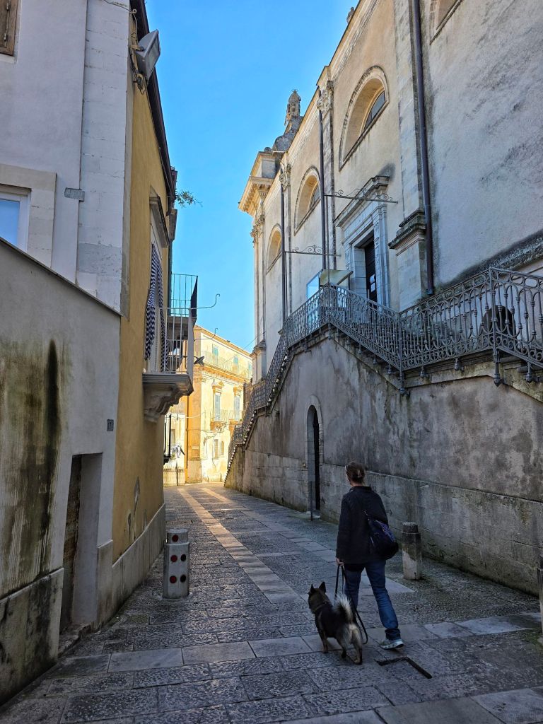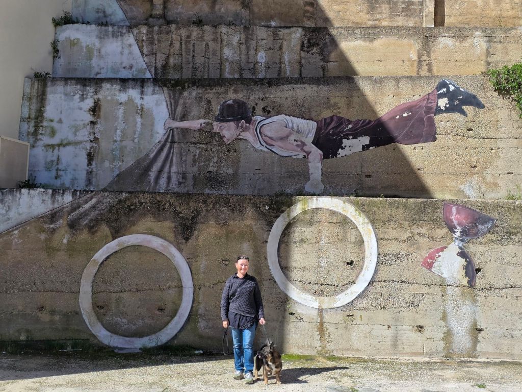 Det är bebott här, inte ett museum. Björn får uppmärksamhet och en kille vi mötte ville visa sin hund och kallade på ”Paula” så att hon kom ut på balkongen och tittade på oss! Så gulligt.