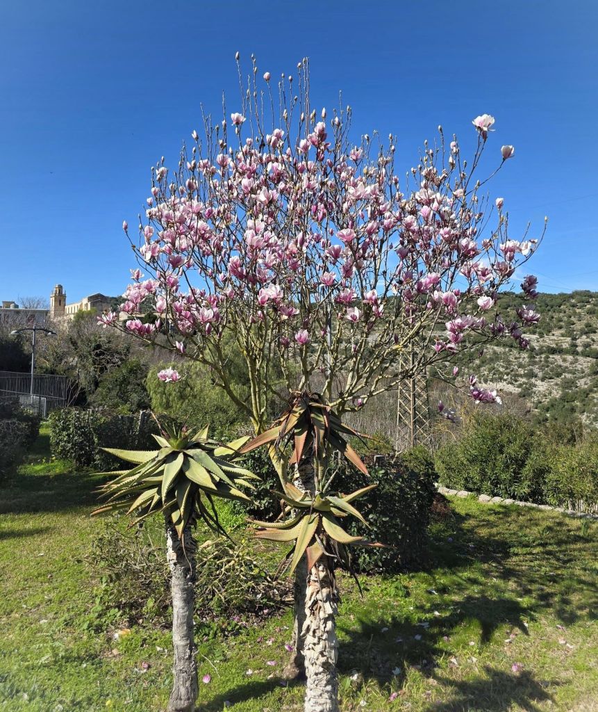 Giardino Ibleo med blommande Magnolia.