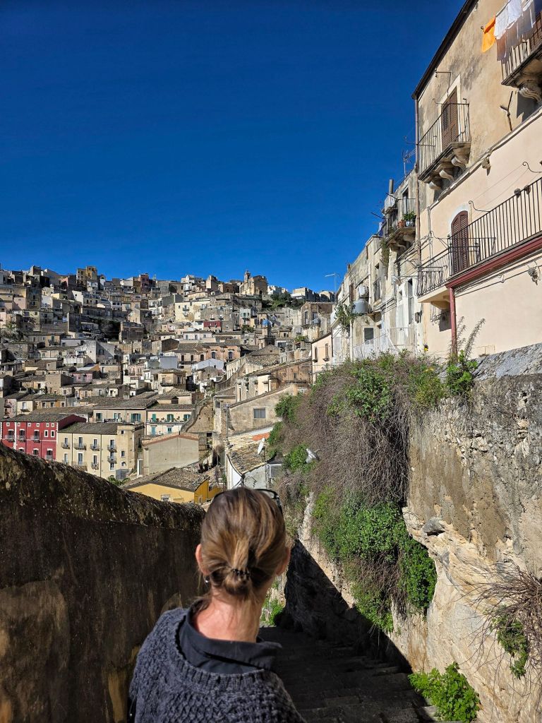 Ragusa Superior syns på kullen på andra sidan av dalen.