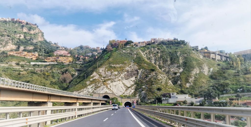 Då var vi på E45 igen, här går den i tunnel under Taormina.
