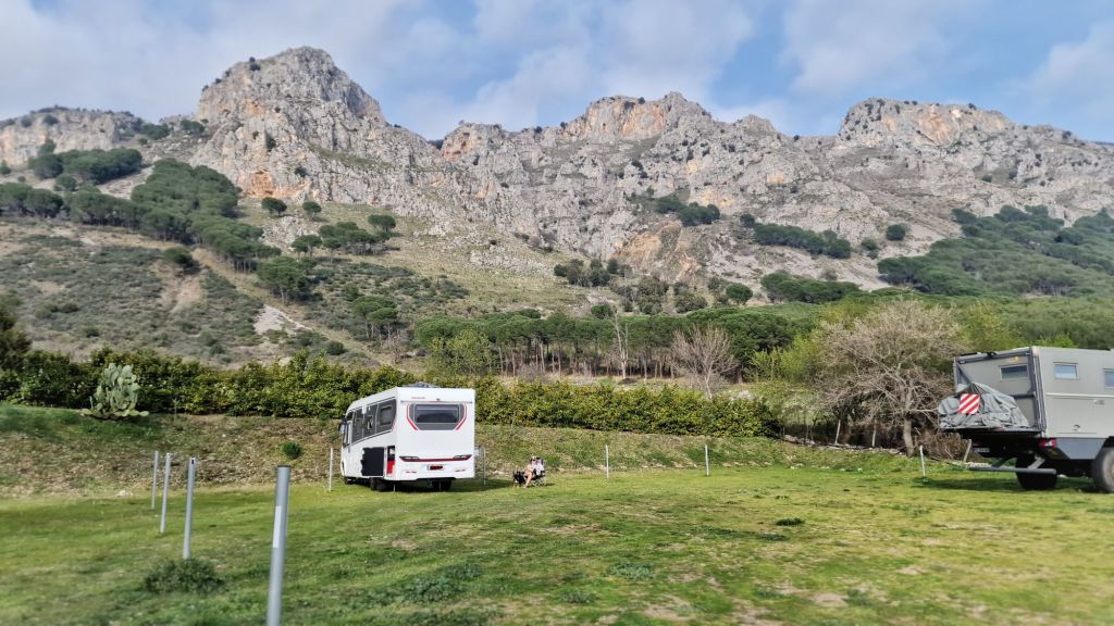 Skönt att komma fram. Vi står uppe i bergen den här gången.
