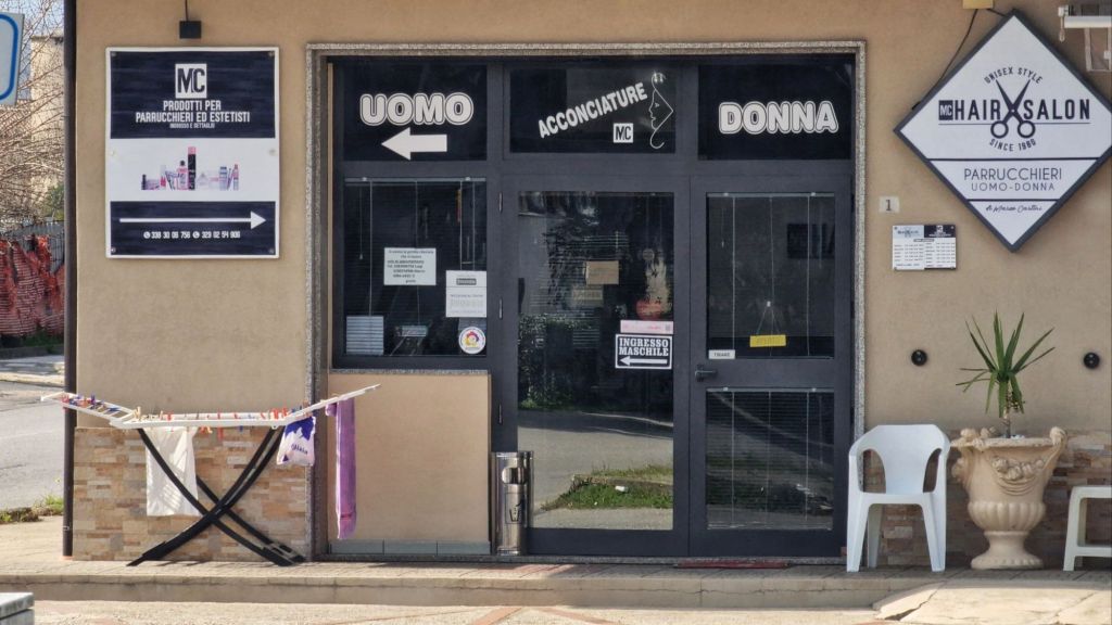 Frisörsalongen är ”unisex” och har olika ingångar för kvinnor och män. Var ”Donna” går in syns tydligt. Att ”Uomo” ska gå runt hörnet syns också. För män som nästan går in i Donnadörren finns ytterligare en skylt ”Ingresso maschile” med tydlig pil åt vänster.