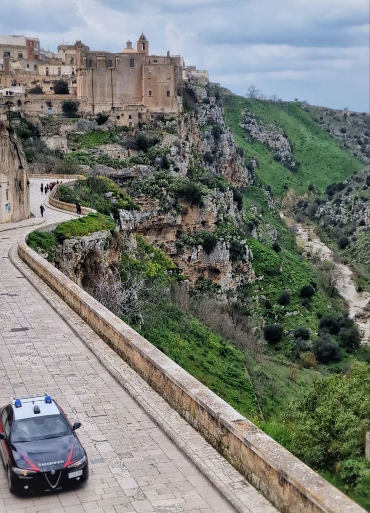 Carabinieri är en av de olika ”polis” instanserna. De lyder under försvarsministeriet och har provinserna och trafik som huvudområde. Städerna är det Polizei som ansvarar för och de lyder under civilministeriet. Denna indelning är inget jag har kunnat se eller verifiera, jag tycker att båda sorterna förekommer frekvent överallt.