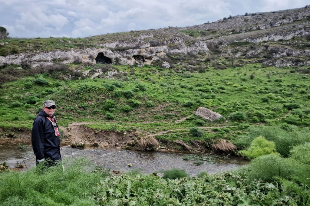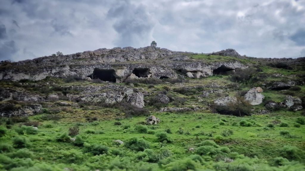 Grottor på andra sidan av ravinen.