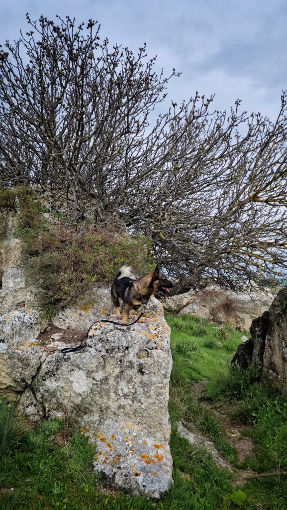 Lite lydnadsträning efter promenaden. Björn gjorde några framsteg, kunde sitta kvar när jag gick i cirkel runt honom och faktiskt när jag gjorde ett skutt också. Det minsann.