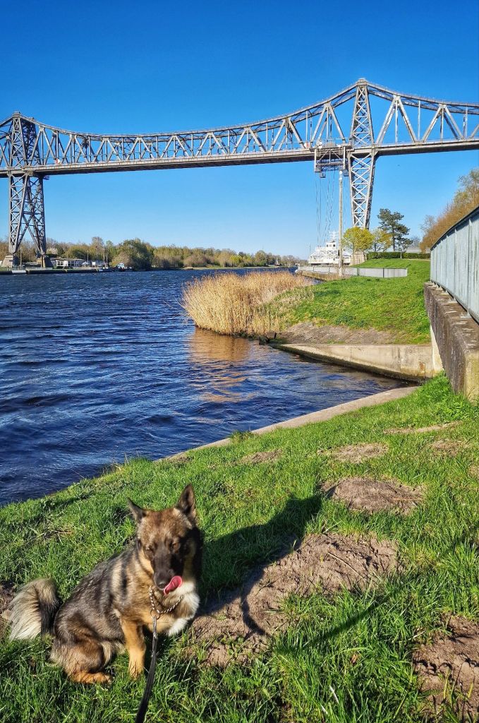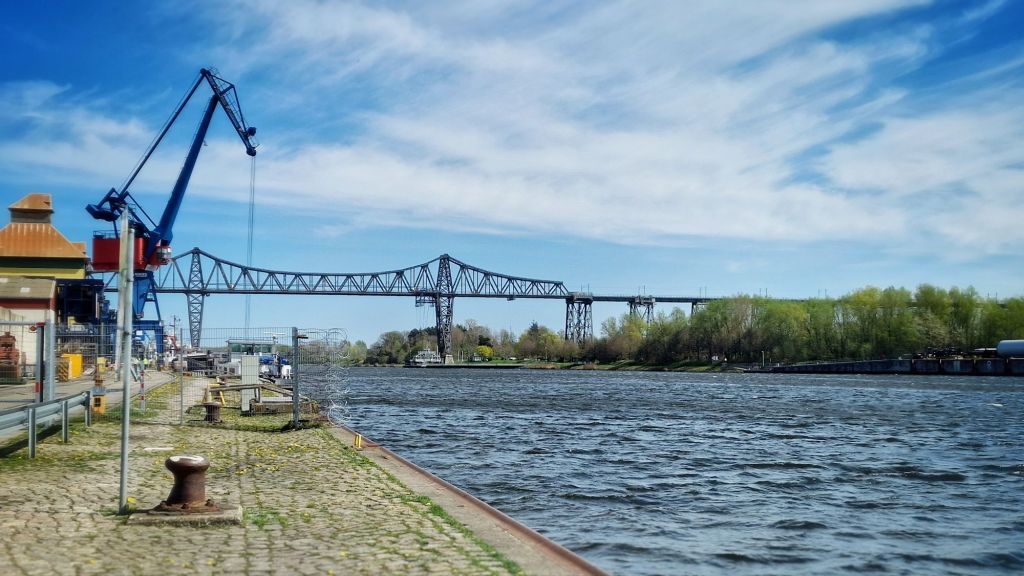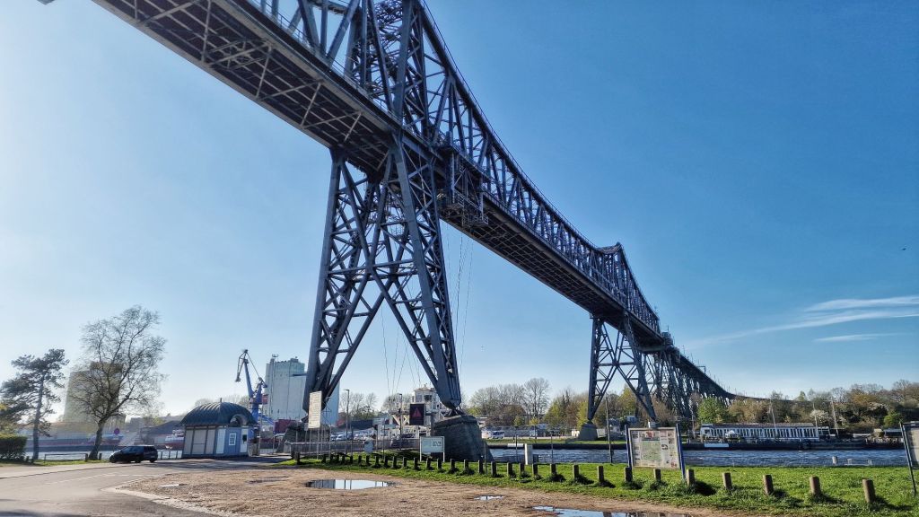 Här ser Björn några eftersläntrare. Under bron ser man en hängande transportkorg för bilar mm. Den är på väg till andra sidan.