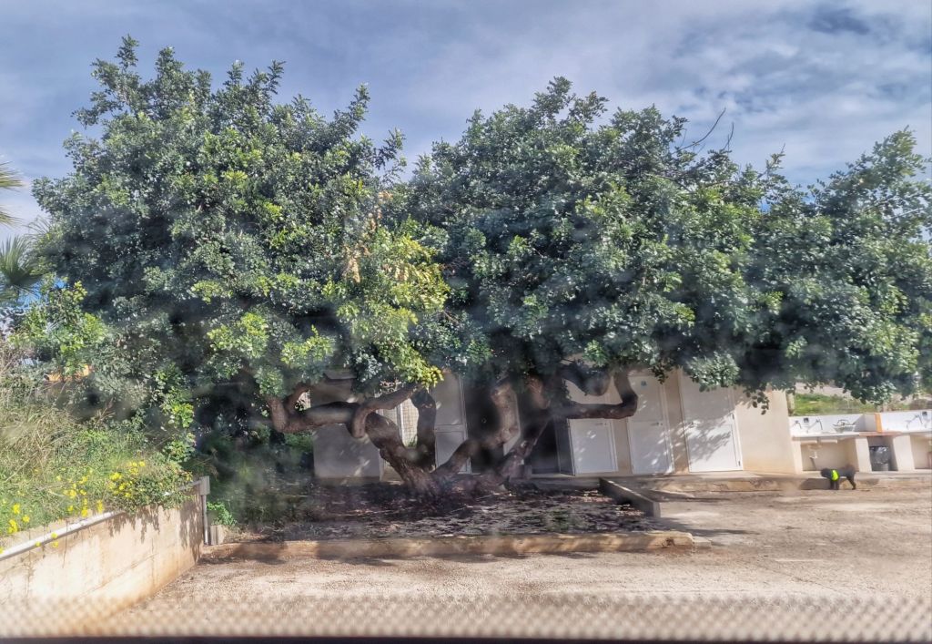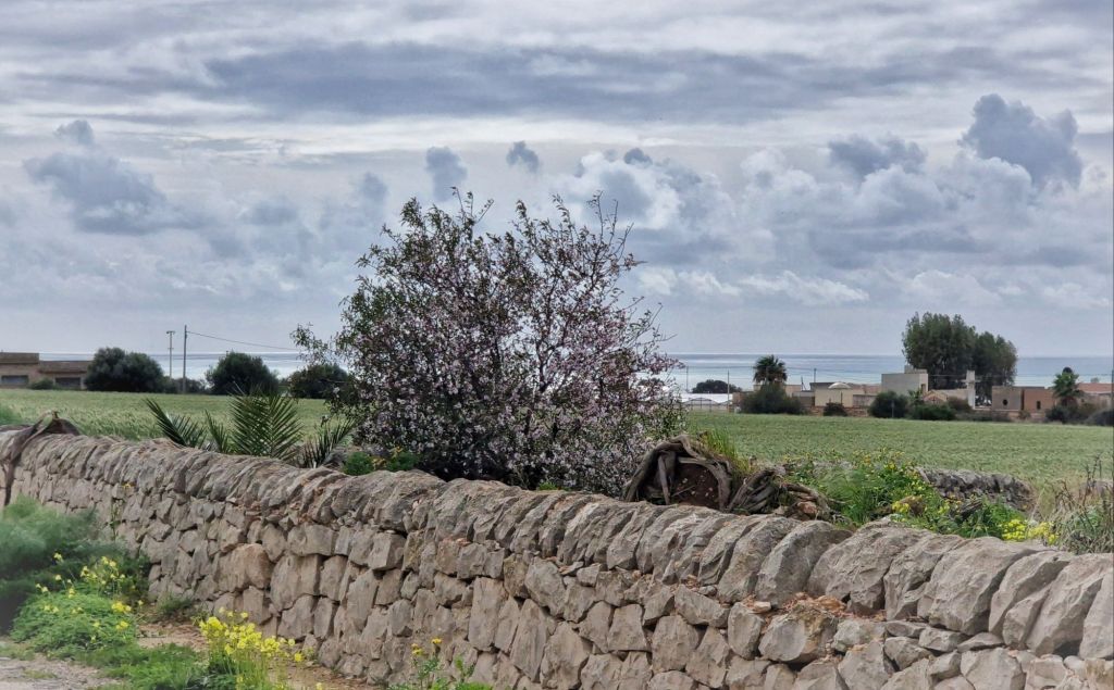 Mandelträdet har kvar blommor.