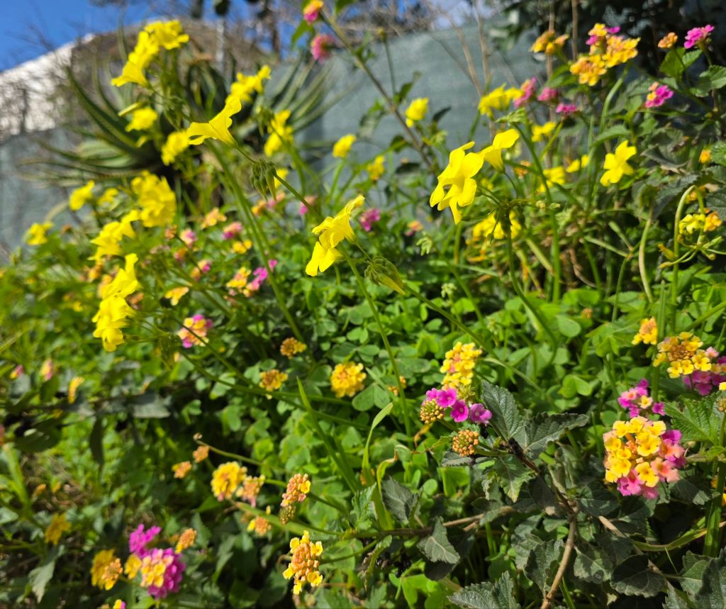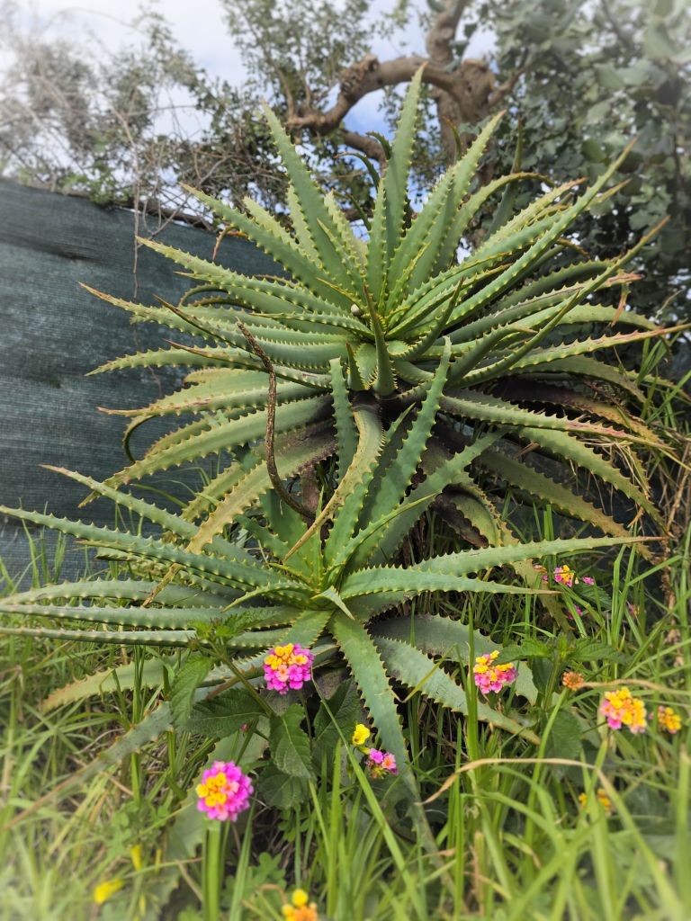 Här en plantering av något som kan vara kronärtskockor, kål eller någon beta, jag kan inte avgöra närmre av att bara se bladen.