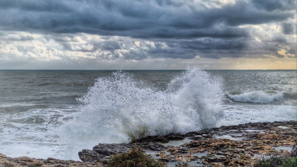 Idag har ovädret bedarrat, vågorna har dock växt.